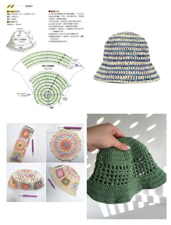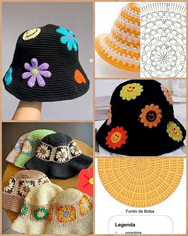 Gráficos e Inspirações de Bucket Hats e Chapéus de Crochê: