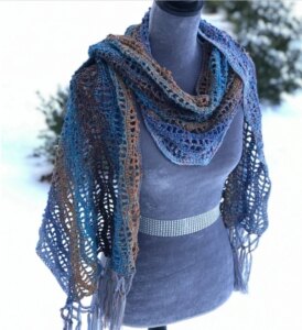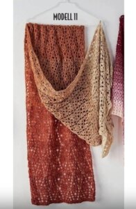 - Cachecol triangular em ponto rede = moderno e leve, ideal para sobreposições.