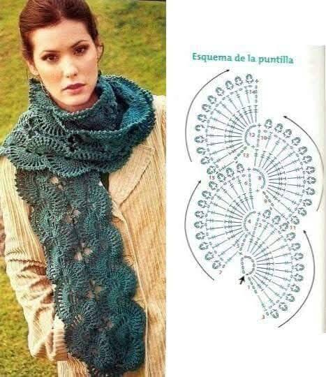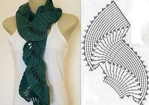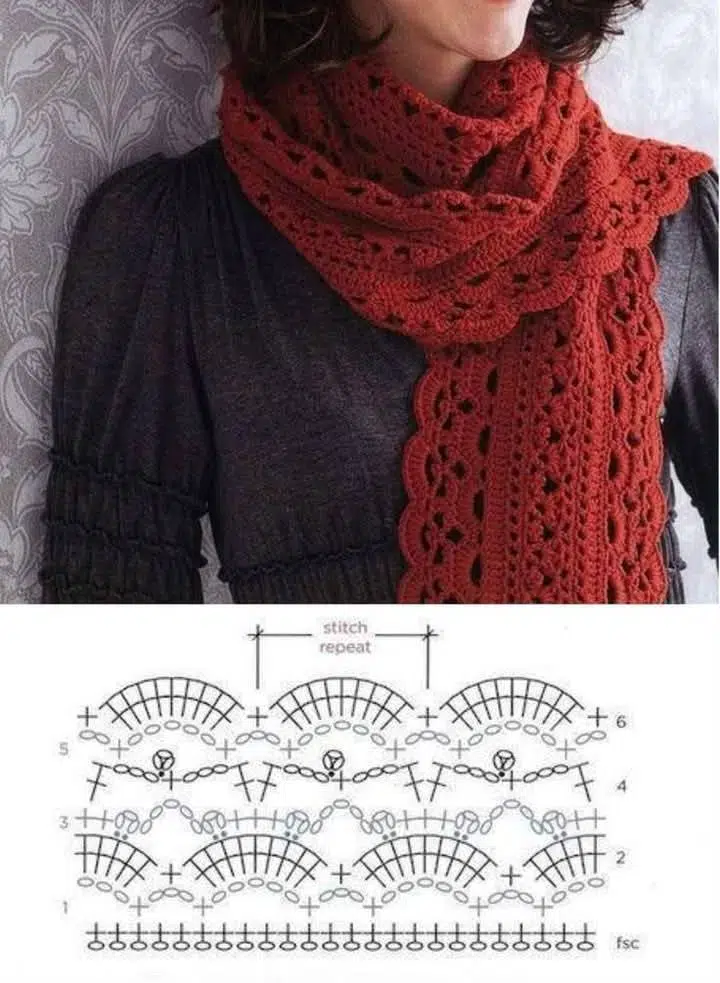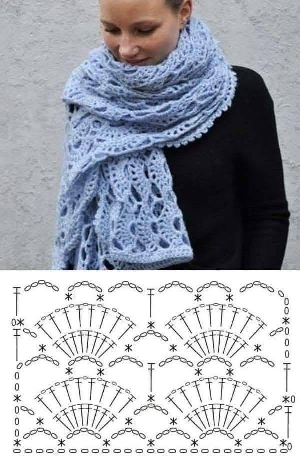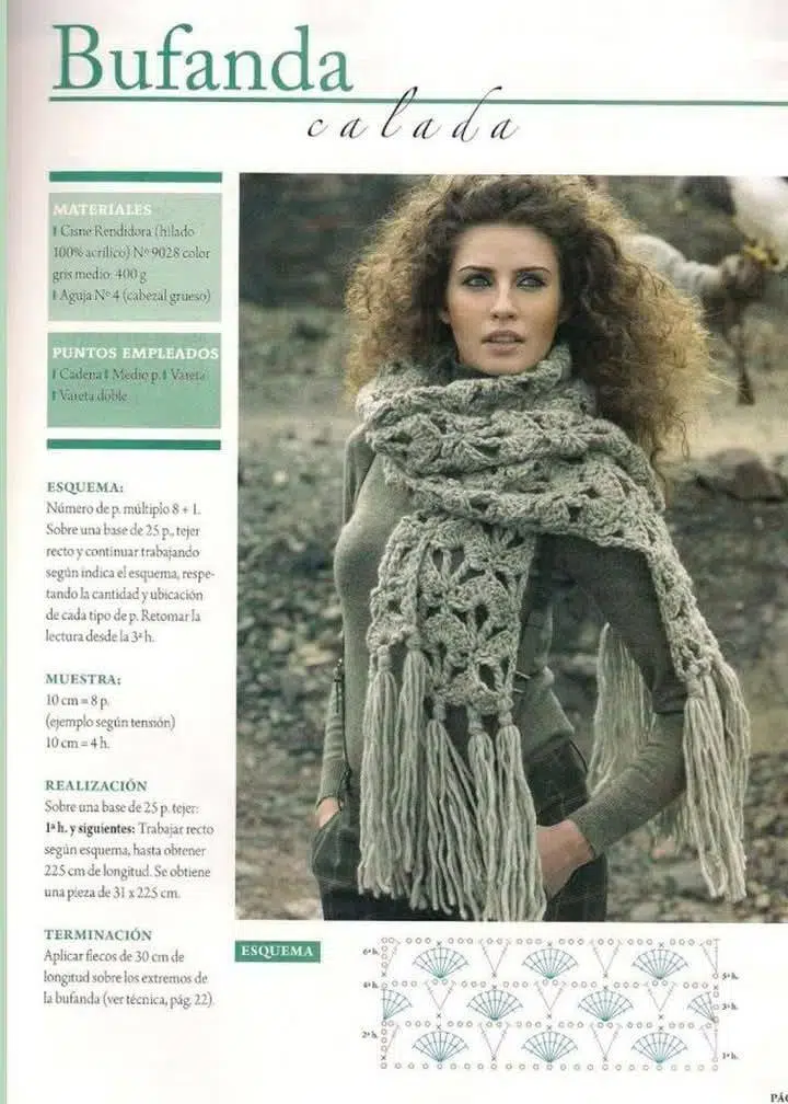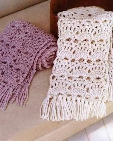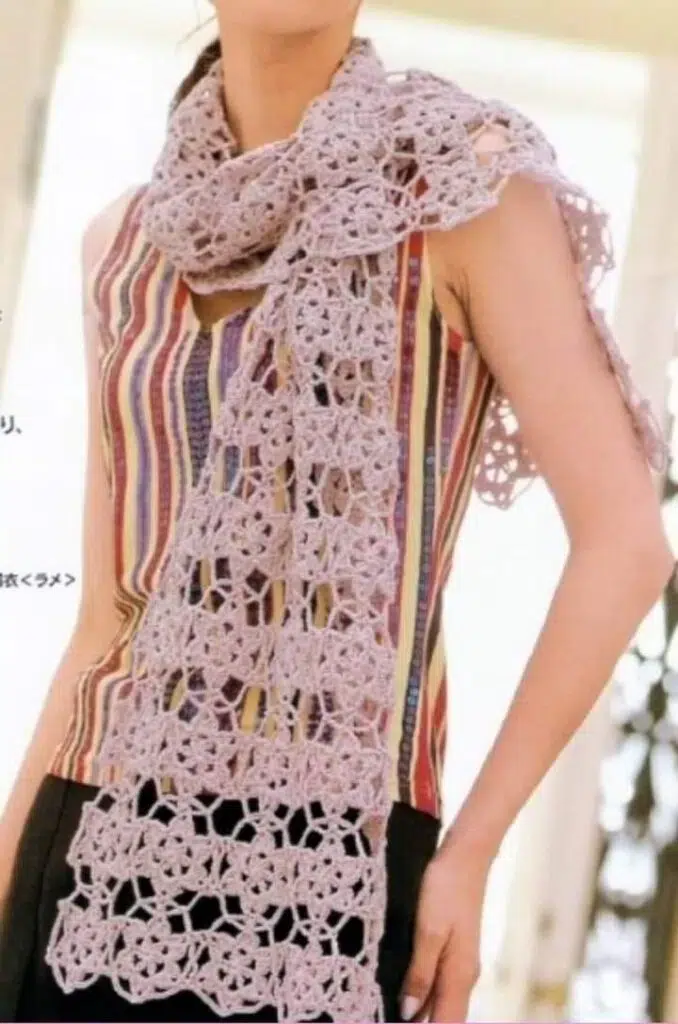 - Cachecol em ponto rede – leve e estiloso, feito apenas com correntinhas e pontos altos.