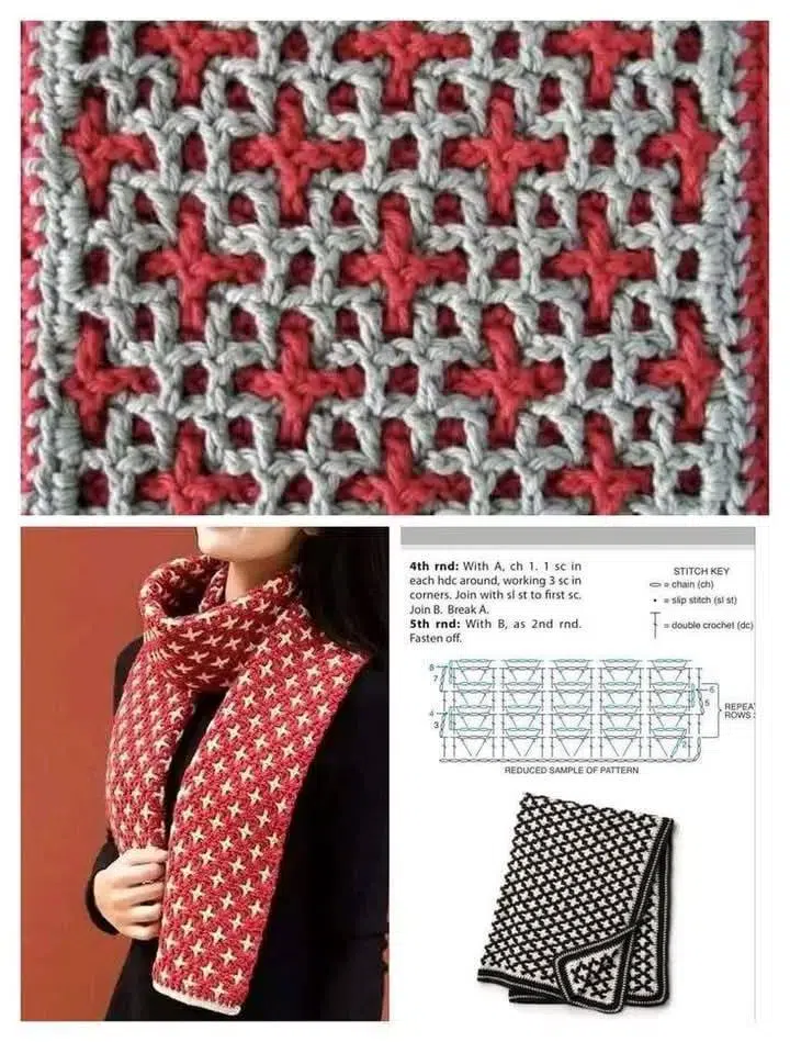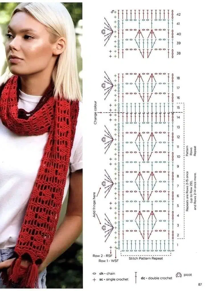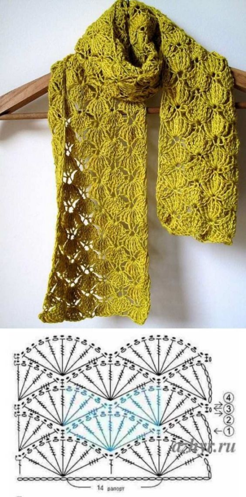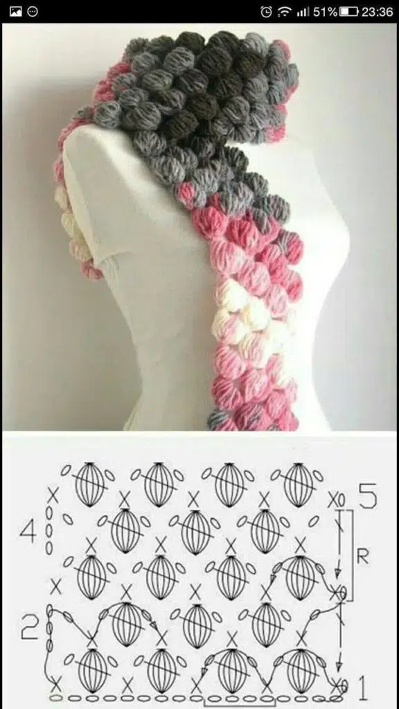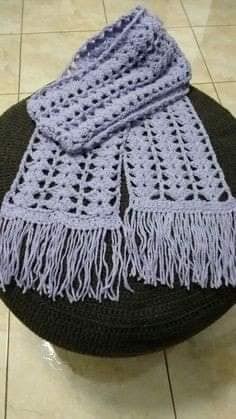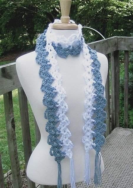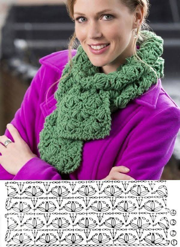 - Cachecol em ponto rede – leve e estiloso, feito apenas com correntinhas e pontos altos.