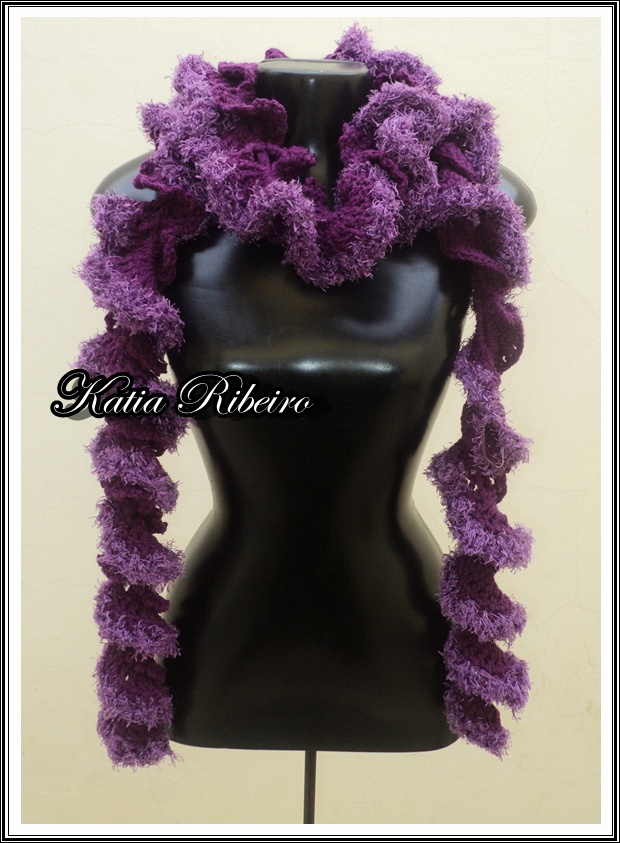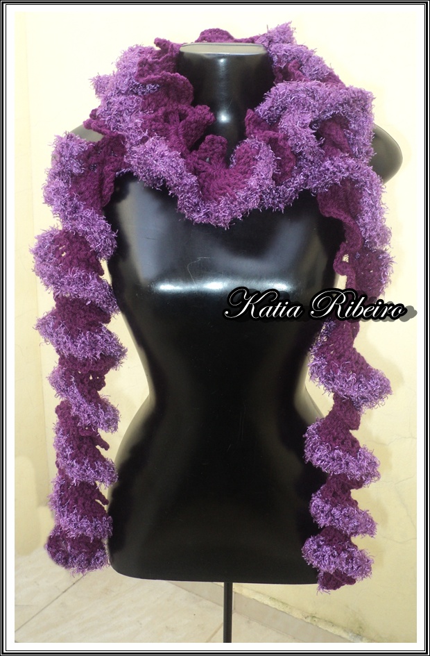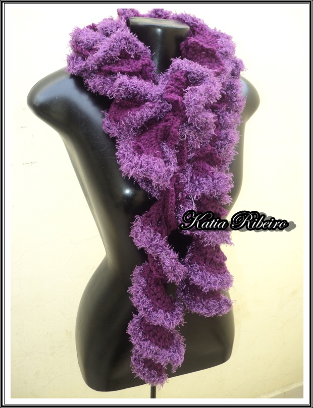 Hoje trago o Cachecol de Babados Pluma, que nada mais é do que o famoso cachecol babados sem o bico onde terminei somente um dos lados com fios de pelos ,o que conferiu o um toque todo especial, caso as amigas queiram aproveitar a idéia e comprovar o resultado fiquem a vontade, vale a pena !!!