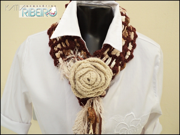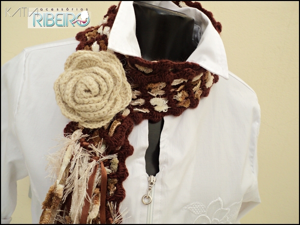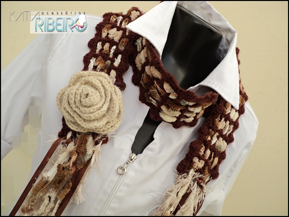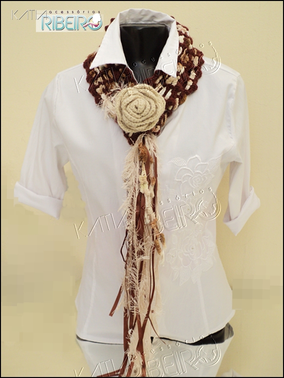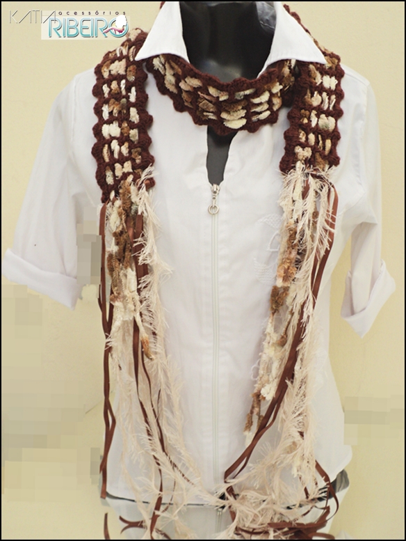 Olá pessoal hoje posto aqui o Cachecol Monte Carlo 1, ele é número 1 porque tenho outro mais largo, este também pode ser usado de várias formas,inclusive como cinto, ele confeccionado com fios, fitas e linhas apresentando assim um efeito arrojado deixando você chic e moderna para várias ocasiões. Pode ser executado em várias cores.