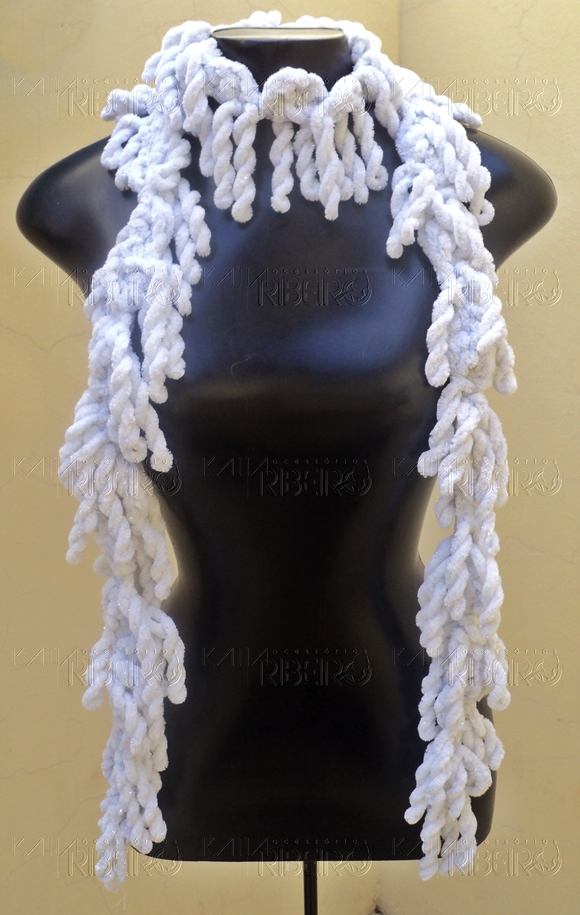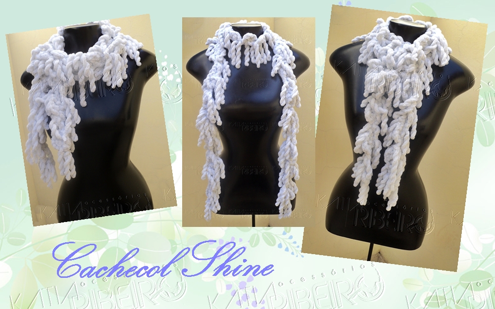 Hoje trago o Cachecol Shine, este também é uma criação minha porque optei por fazer um ponto diferenciado, na foto não dá para notar , depois estarei tirando uma foto com mais detalhes. Pode ser usado como cachecol ou gola , este fio parece veludo, possui um toque extremamente suave e é bastante grosso ideal para este tempo frio que tem feito mesmo antes do inverno, também possui em sua composição uns fios prateados que estão super em alta nesta estação então use e abuse de mais essa opção.