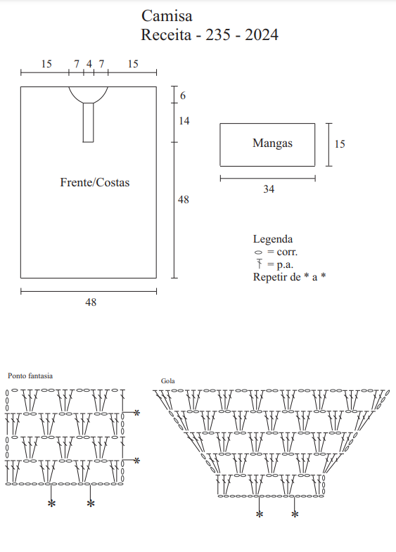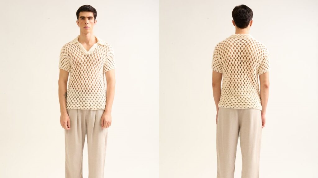 Para recriar uma sofisticada camisa polo de crochê inspirada na coleção “Gambiarra”, é necessário seguir um conjunto de instruções precisas. Com 3 novelos do fio Anne na cor natural e agulhas de crochê de 2,0 mm e 2,5 mm, é possível iniciar a execução da peça. Os pontos básicos, como a correntinha, ponto baixíssimo, ponto baixo e ponto alto, são essenciais para a montagem da camisa.