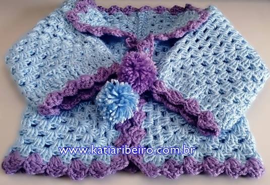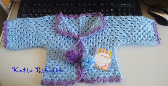 Vejam só o lindo casaquinho que fiz, soltei a imaginação fiz pompons , usei duas cores que combinam e nasceu o Casaquinho Duo que ♥ muito o resultado.
