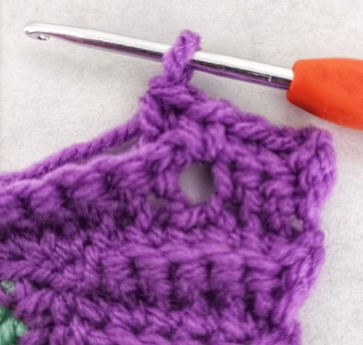 Frente direita – Então, com o fio Abecê na cor Alumínio, faça uma corr. de 24 p. mais 3 corr. para virar e trabalhe em p. fantasia seguindo o gráfico. Assim, A 25 cm do início trabalhe rem..