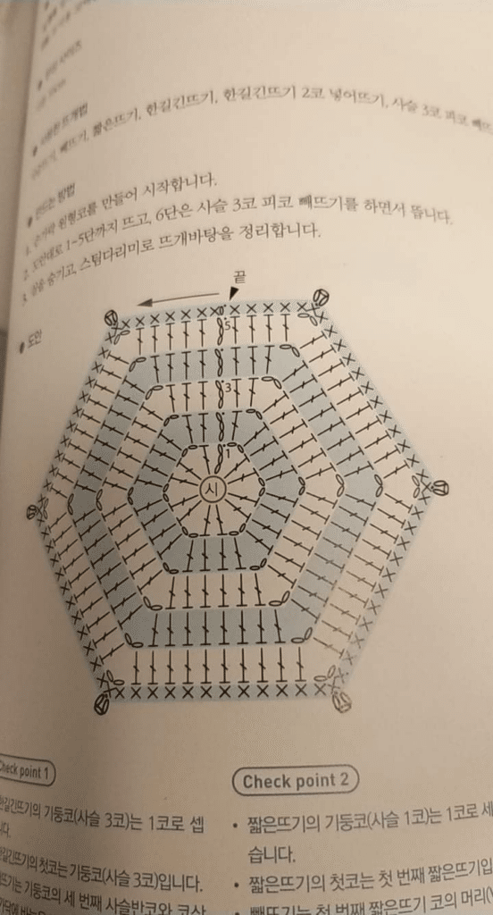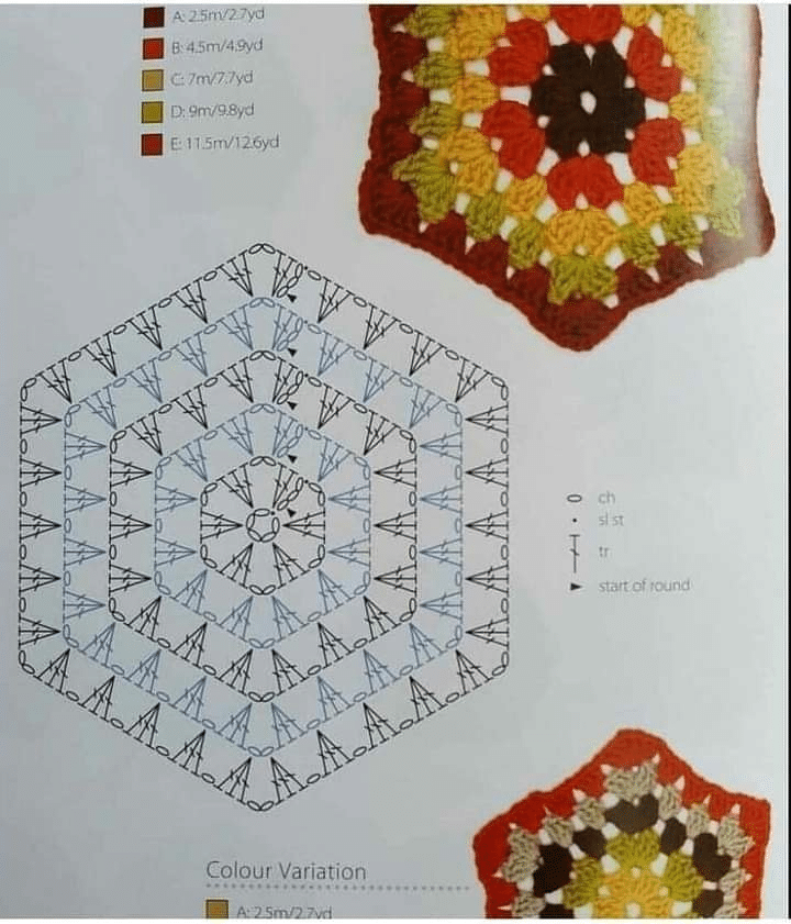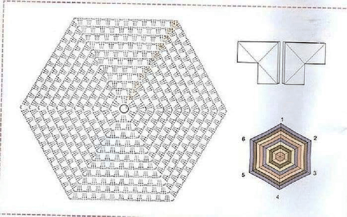 Pontos utilizados: Correntinha (corr.). Pto baixo (p. b.): introduza a ag. laç., puxe o p. e com outra laç., rem. todos os p.. Ponto fantasia: siga o gráfico. Pnt de união 1 e 2: siga o gráfico.