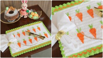 1.2k Views no CROCHÊ, Jogo Americano Jogo Americano em Crochê Cenouras: Sua Mesa na Páscoa! Veja Mais