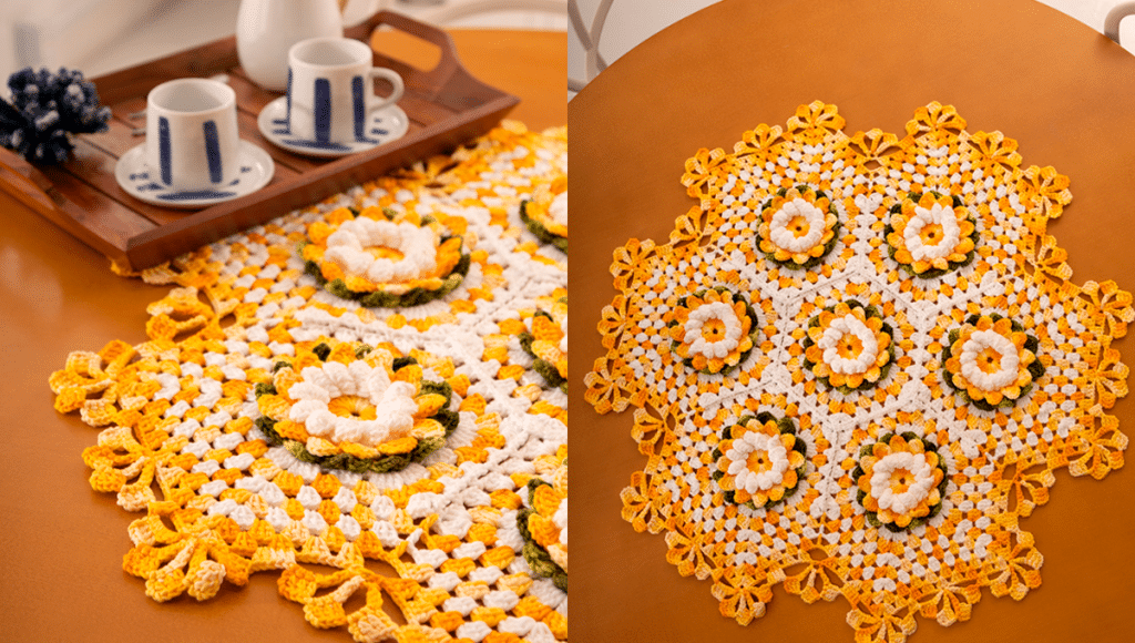 Com essa peça, sua mesa de jantar é transformada em um cenário florido e cheio de charme, com o adicional de proteger sua mesa de riscos e arranhões. Cada detalhe do Centro de Mesa em Crochê Pérola é uma expressão de amor pelo crochê e pelo encanto da sua mesa.