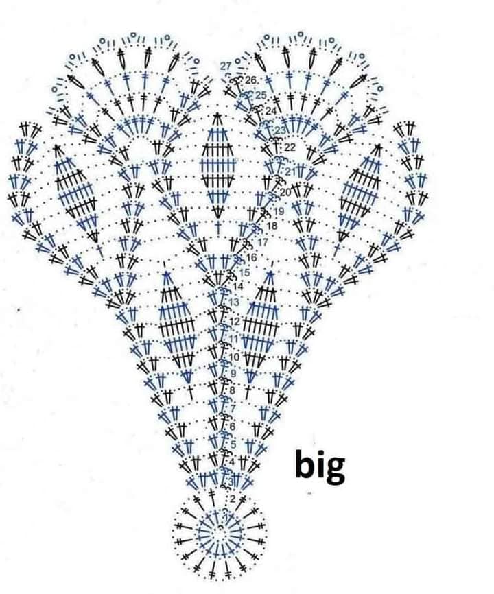 - Terceira carr.: caminhe com 10 p.b.x. inicie com 6 corr. *1 p.b., 5 corr.* repita de *a* até o final da carr. Finalize com 2 corr. 1 p.a. sobre a corr. inicial.