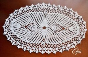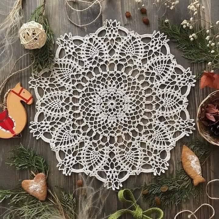 - Simplicidade Elegante: Um centro de mesa redondo com um padrão de abacaxi ou estrela é um clássico que nunca sai de moda. Use fios brancos ou bege para um visual tradicional.