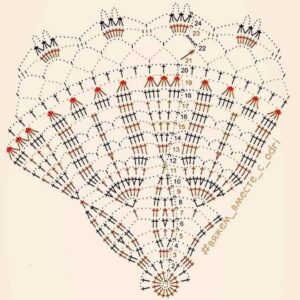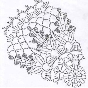 - Terceira carr.: caminhe com 10 p.b.x. inicie com 6 corr. *1 p.b., 5 corr.* repita de *a* até o final da carr. Finalize com 2 corr. 1 p.a. sobre a corr. inicial.