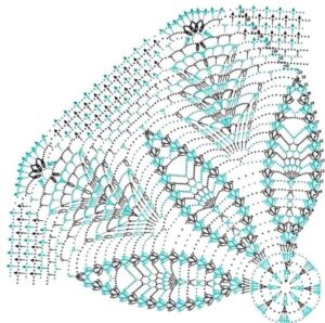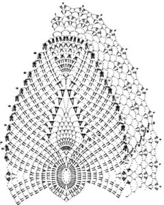 - Terceira carr.: inicie com 6 corr. *1 p.b., 5 corr.* repita de *a* mais 20x; finalize com 2 corr. 1 p.a. sobre a corr. inicial.