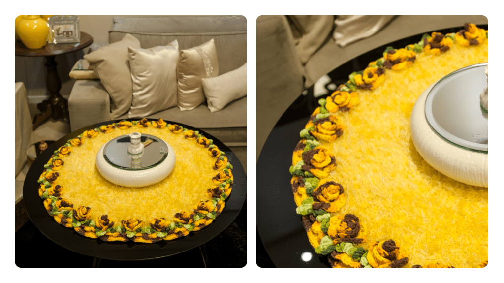 - Adicione Detalhes Decorativos: Personalize seu centro de mesa em crochê adicionando detalhes decorativos, como contas, fitas, flores artificiais ou outros elementos. Isso pode ajudar a tornar sua peça única e especial.