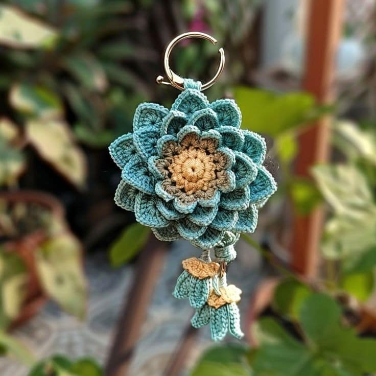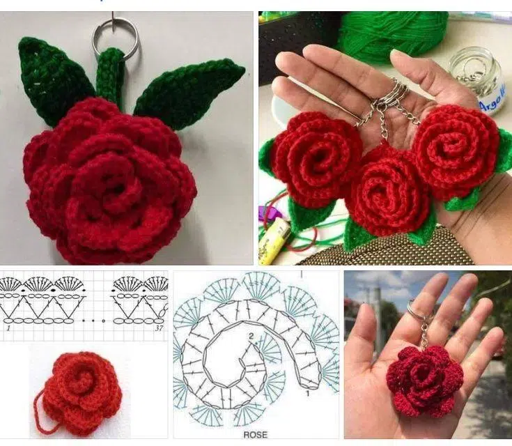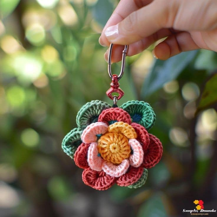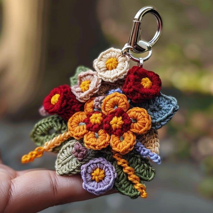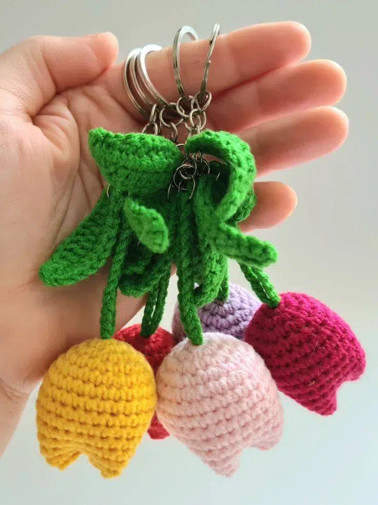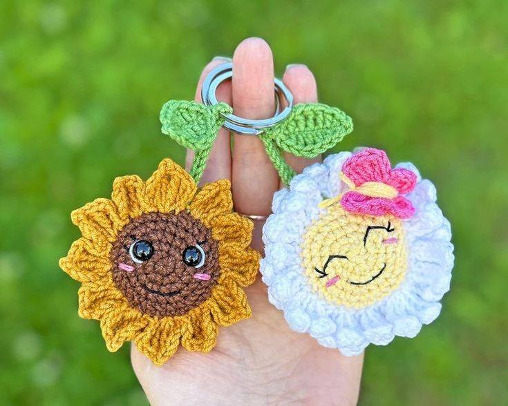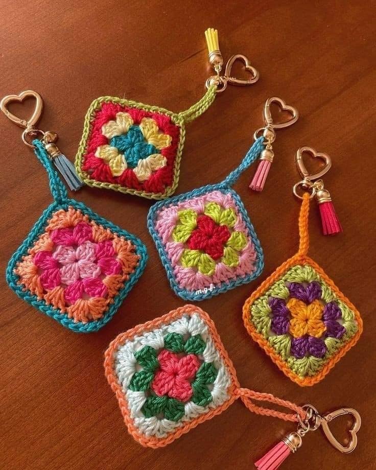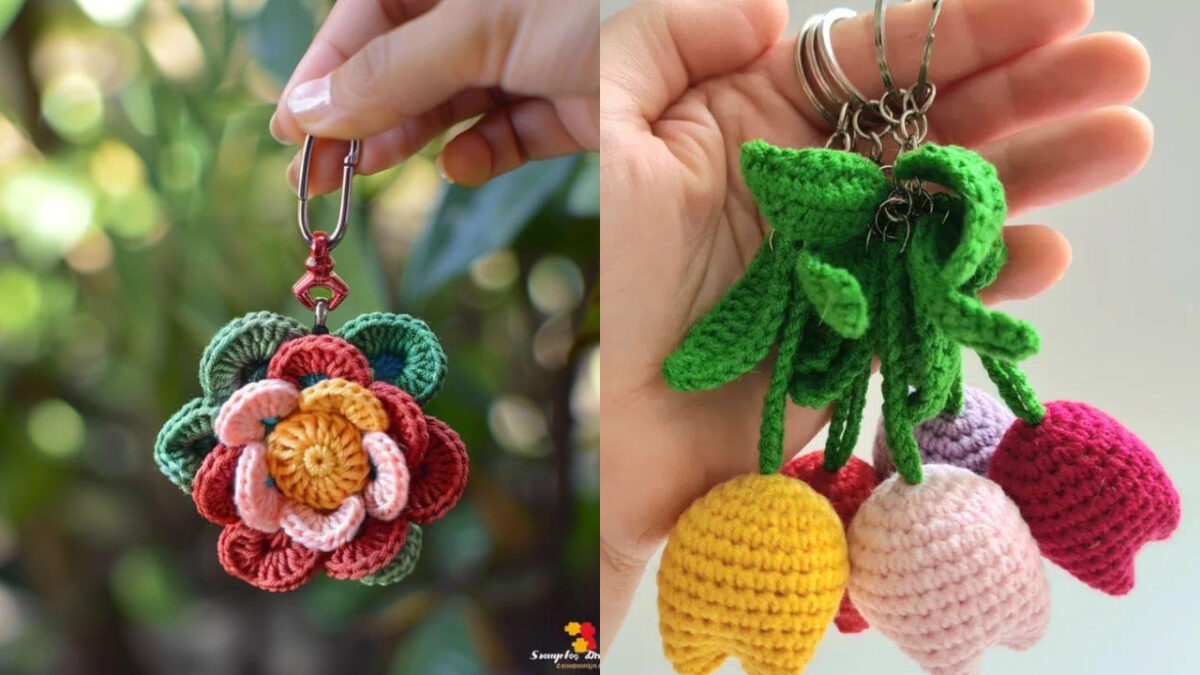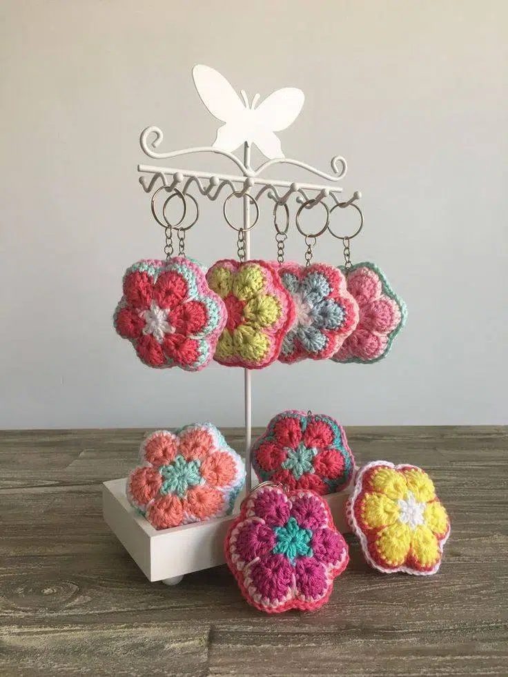 - Chaveiros de flor: delicados, coloridos e ótimos para aproveitar sobras de fios.
