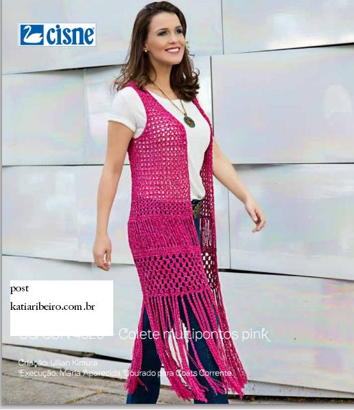 por katia 19/02/2016, 15:42updated 24/08/2022, 11:59 noNoticias Colete Crochê Tamanho: Único Material: Cisne Glam (nov. de 100 g), 4 nov. na cor 03140 (pink). Ag. para crochê de alumínio anodizado Corrente Milward de 3,00 mm Coletes Próximo post