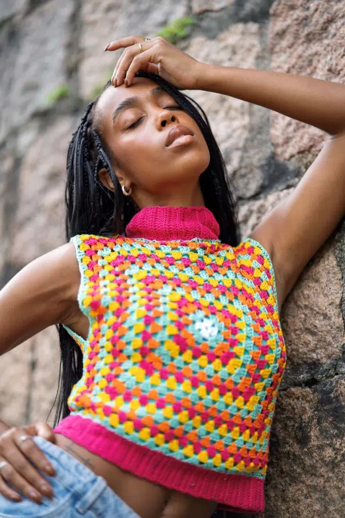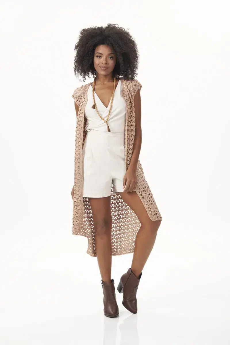 O colete de crochê é uma peça curinga que se adapta facilmente a diversas ocasiões. O segredo é saber equilibrar o visual.