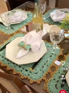 - Praticidade: Ao contrário de uma toalha de mesa completa, que pode ser mais difícil de lavar e guardar, o jogo americano de crochê é fácil de manusear e limpar. Ele cobre o espaço necessário para pratos, copos e talheres, sem complicar a vida de quem cuida da casa. Além disso, é uma peça que pode ser usada tanto em ocasiões especiais quanto no dia a dia.