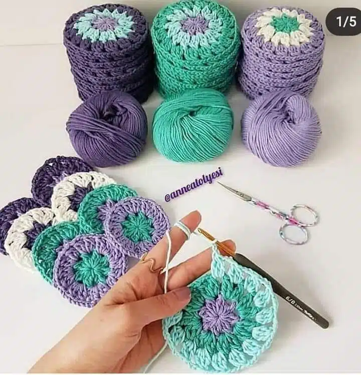 - Materiais: fio de algodão ou acrílico, agulha de crochê compatível, tesoura e agulha de tapeçaria.