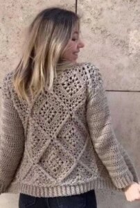 - Compartilhe seu cardigan de crochê nas redes e inspire outras artesãs
