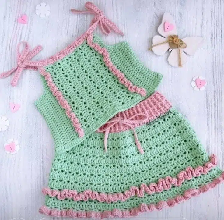 Além disso, o crochê oferece vantagens práticas: é leve, respirável e se adapta bem às variações de temperatura, tornando-o ideal para roupas de bebê e moda infantil.