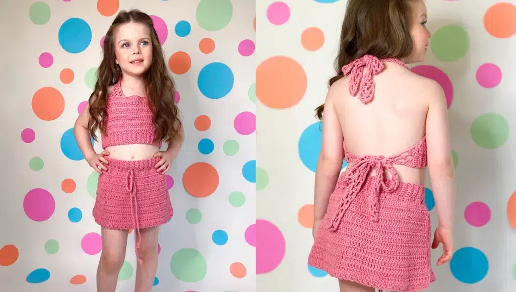 - Conjunto com saia e top – charmoso para meninas, cheio de detalhes delicados.