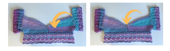 A partir da ponta do triângulo do busto faça 50 corr e prenda com um pbx na 1ª corr das costas
