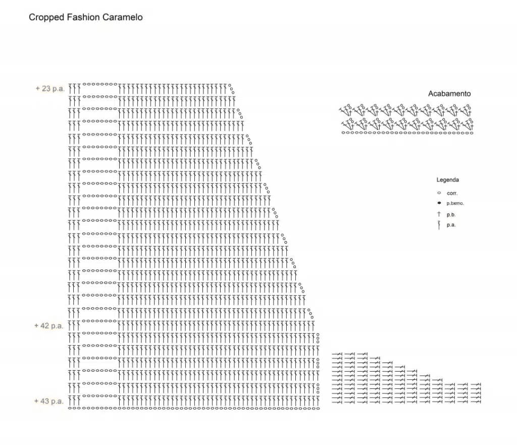 Pontos utilizados: corr.: correntinha, p.b.: ponto baixo, p.a.: ponto alto.