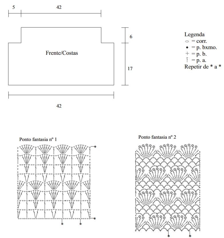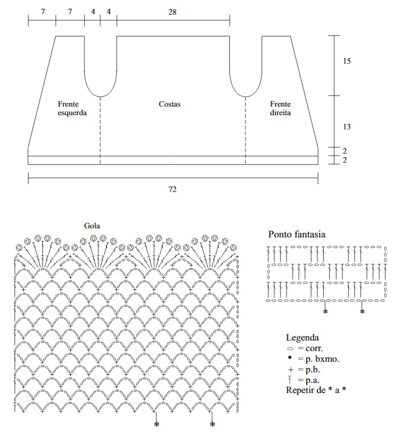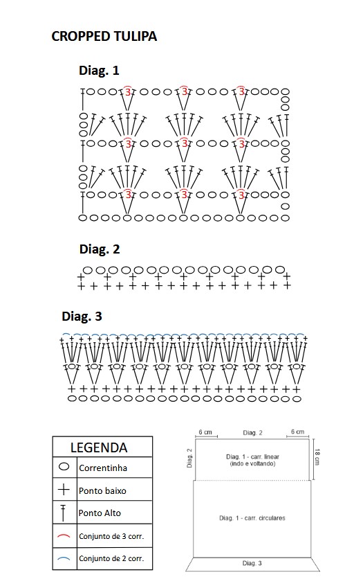- Cropped frente única: leve e moderno, perfeito para os dias quentes. Pode ser feito com ponto fantasia e fios coloridos.
