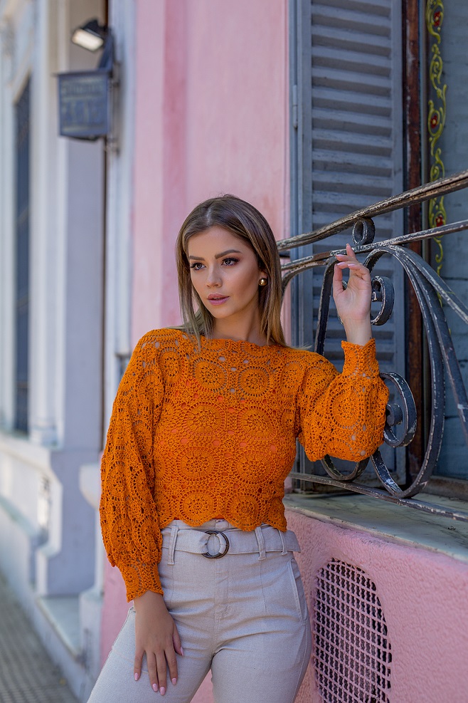 - Cropped com mangas bufantes: mistura o artesanal com o romântico, trazendo um toque fashion ao visual.