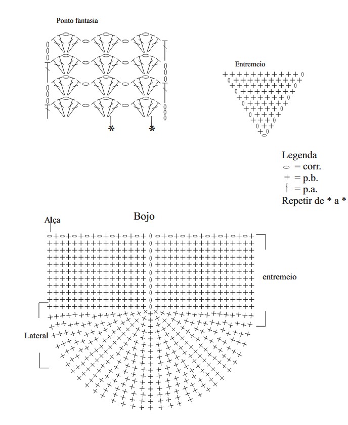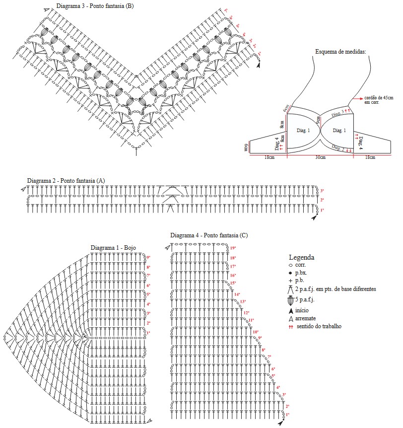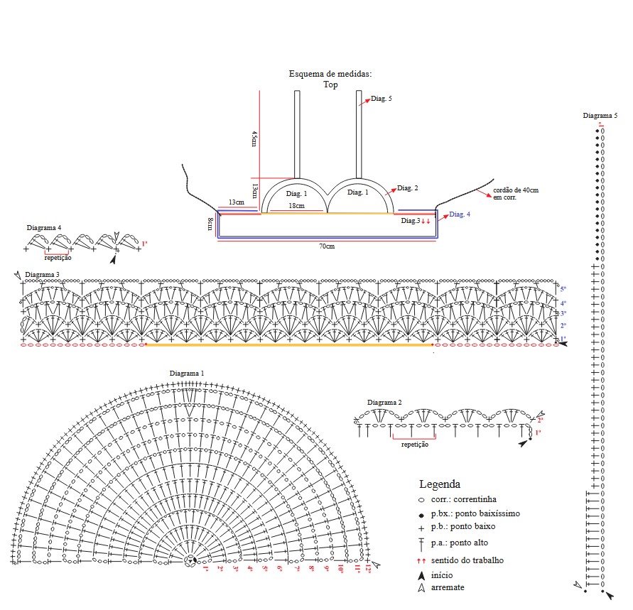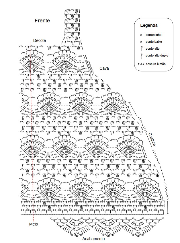 - Comece com uma correntinha do tamanho da circunferência do busto.