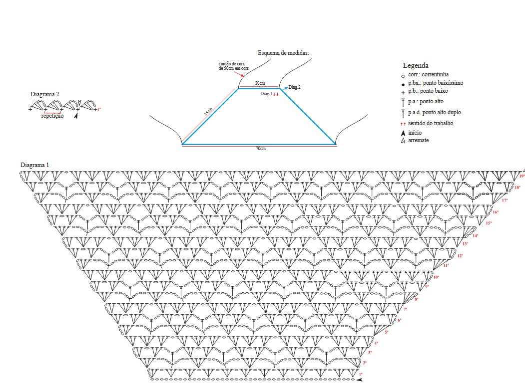 Esse modelo simples serve de base para inúmeras variações, bastando trocar o tipo de ponto ou fio para obter novos estilos.