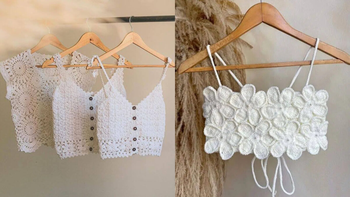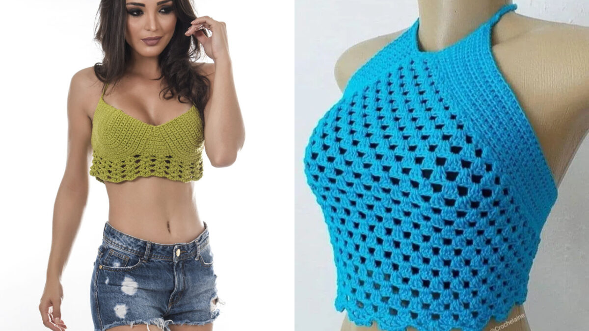 Dica rápida: aposte em croppeds de crochê com fios coloridos ou detalhes em pontos abertos para um visual leve e moderno.