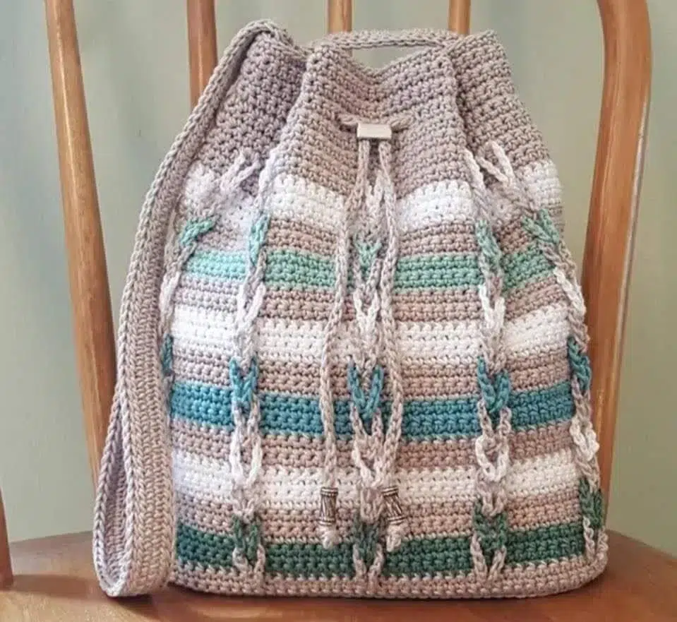 - Mochila de crochê com ponto baixo centrado: resistente e funcional.