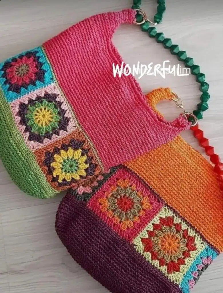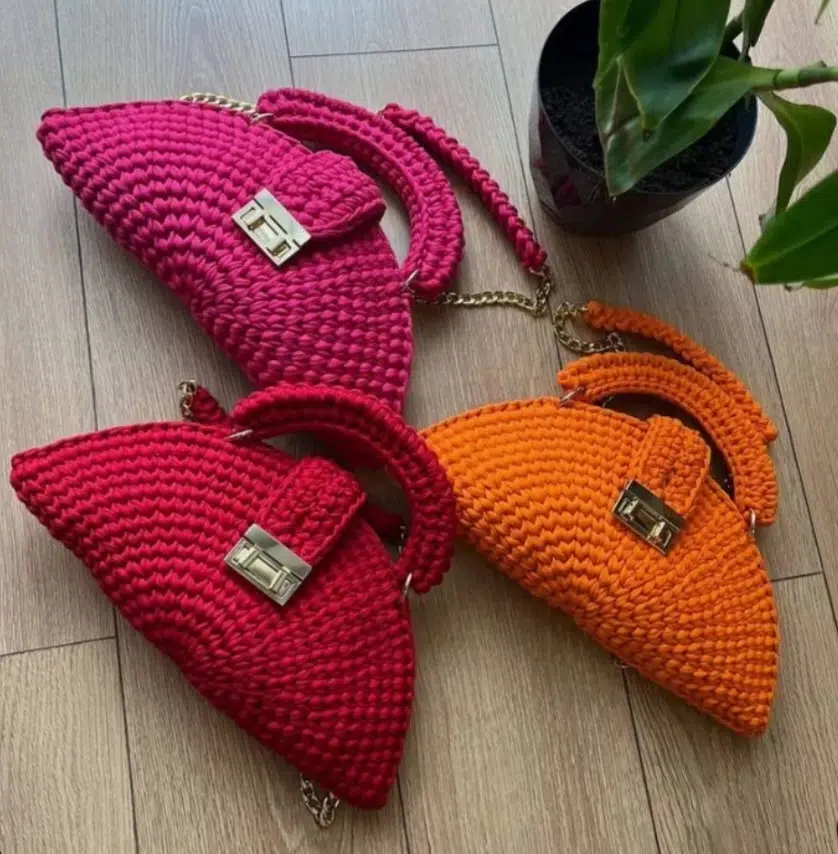 O crochê permite explorar combinações criativas de texturas, cores e formatos, resultando em bolsas modernas que valorizam tanto o look quanto o trabalho artesanal.