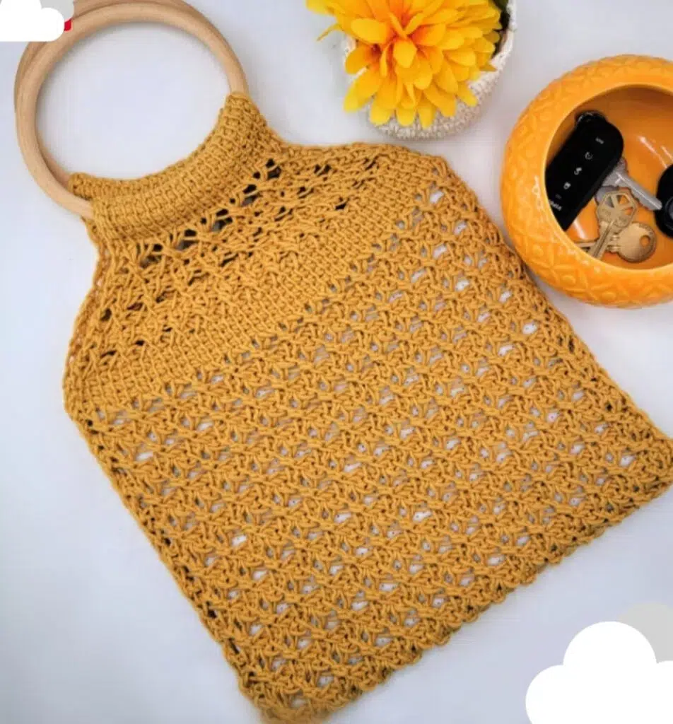 - Bolsa shopper em ponto rede: prática e estilosa.