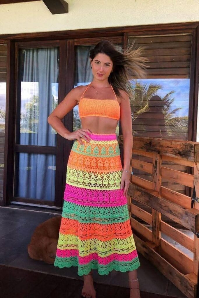 Além de serem lindas, as saias de crochê também são práticas. Podem ser usadas no dia a dia, em passeios, festas ou até na praia, dependendo do modelo e do tipo de fio escolhido.