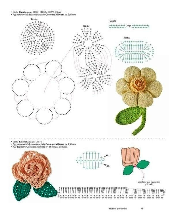 Sendo assim, trouxemos gráficos simples para ajudá-las a visualizar o padrão de pontos necessário para criar sua própria flor de crochê. Com essas instruções e gráficos, você está pronta para começar a criar suas próprias flores de crochê deslumbrantes para aplicação em uma variedade de projetos. Deixe sua imaginação voar e transforme seus projetos em verdadeiras obras de arte com essas flores encantadoras!