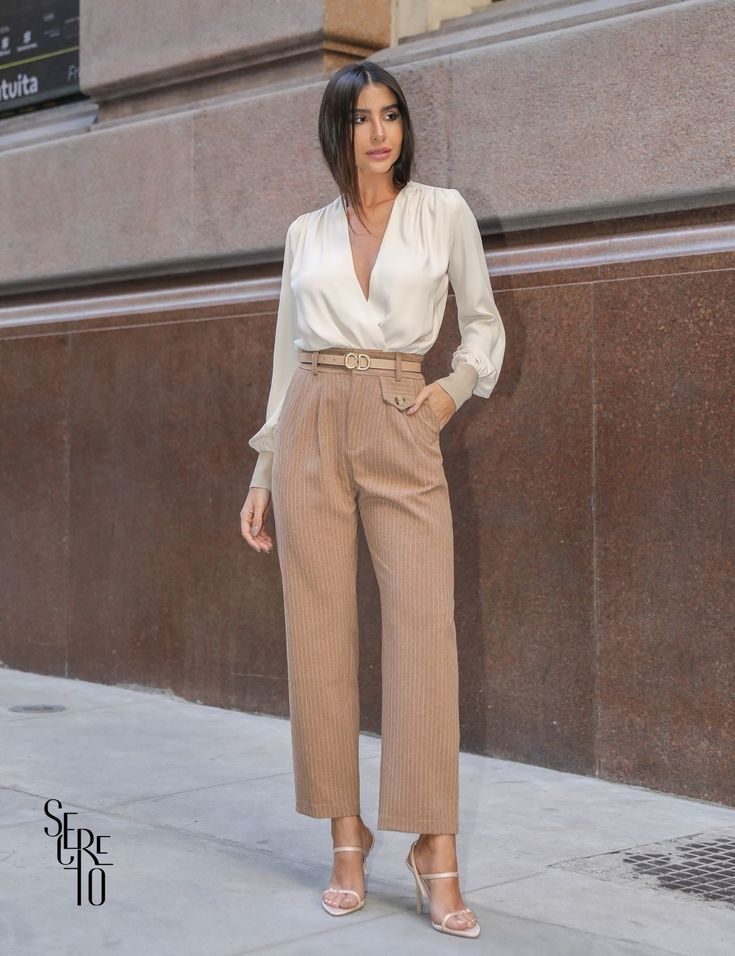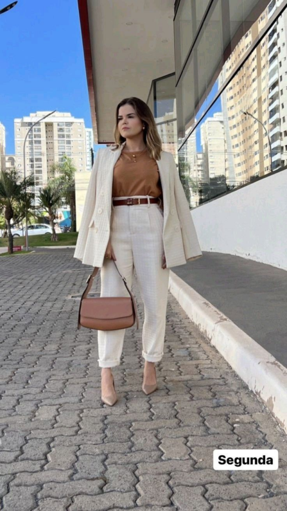 - Conjuntinhos: Conjuntos estruturados em cores sóbrias ou suavizadas são ideais para o trabalho, especialmente quando combinados com blusas básicas.