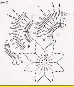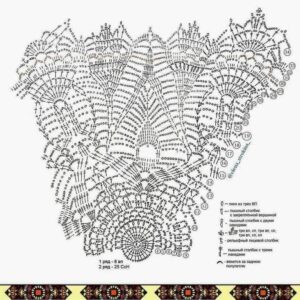 Abreviações: p. (Ponto), pts. (pontos), trab. (trabalhe ou trabalhando), ag. (agulha), rep. (repetição ou repetições), rem. (rematar), acomp. (acompanhando), corr. (Correntinha), p.b.x. (Ponto Baixíssimo), carr. (Carreira); laç. (Laçada); p.a. (Ponto Alto); p.b. (Ponto Baixo), p.p. (Ponto Pipoca com 6 pontos altos), p.a.r.f. (Ponto Alto em Relevo pegando pela frente), p.a.d. (Ponto Alto Duplo), m.p.a. (Meio Ponto Alto)