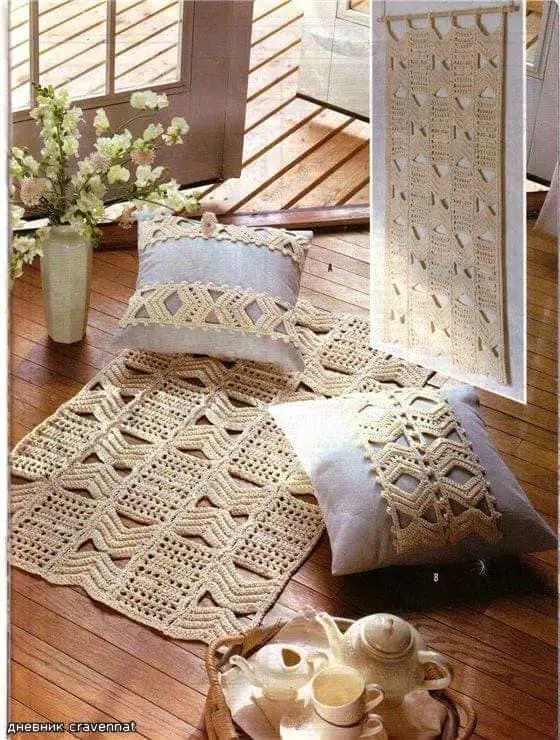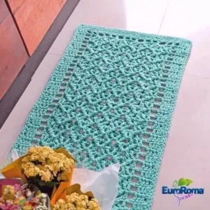 - Corredor: Use o tapete de crochê retangular para decorar e proteger o piso em corredores, criando um ambiente convidativo e charmoso.