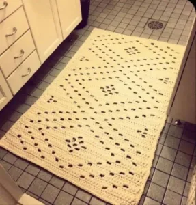 - Banheiro: Embora nem todos os tapetes de crochê sejam adequados para ambientes úmidos, existem opções que podem ser usadas para adicionar um toque de charme ao banheiro. Escolha um tapete de crochê feito com fios resistentes à umidade e coloque-o ao lado do chuveiro ou da banheira.