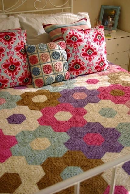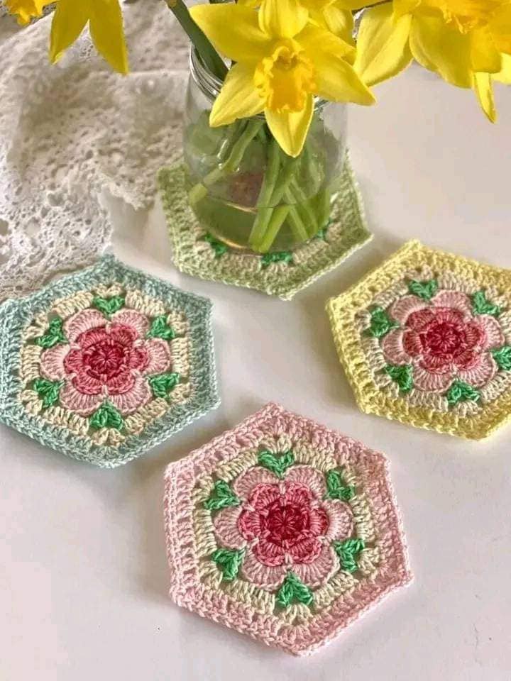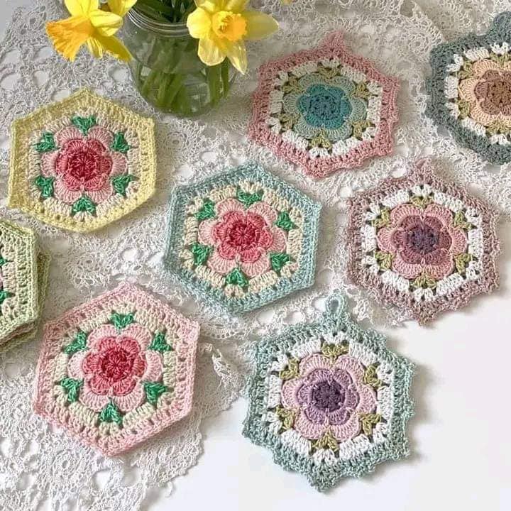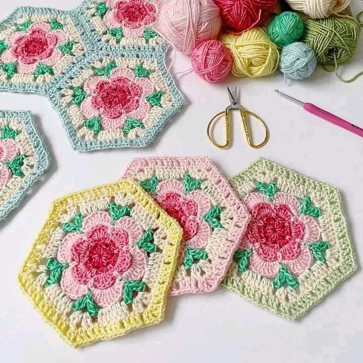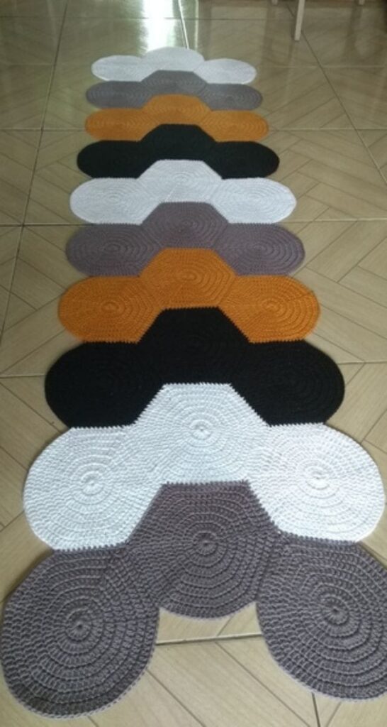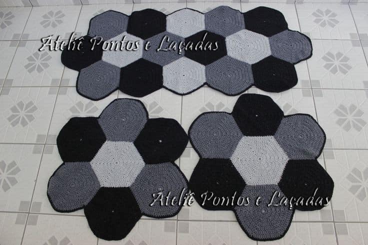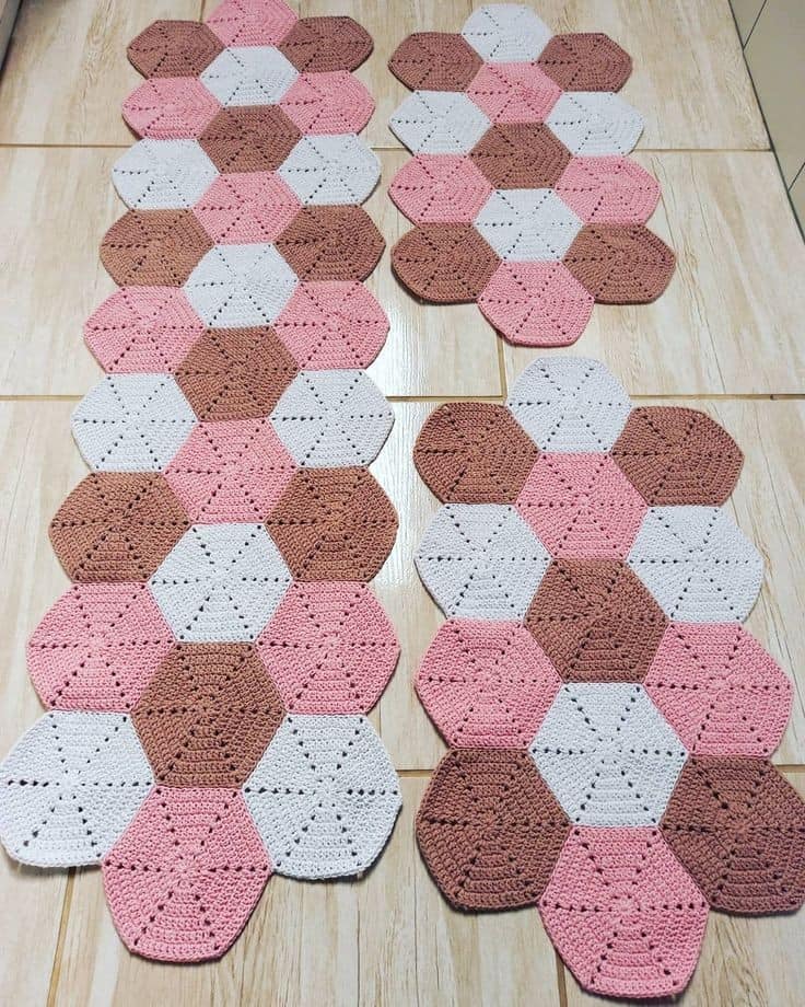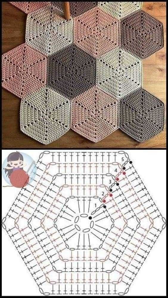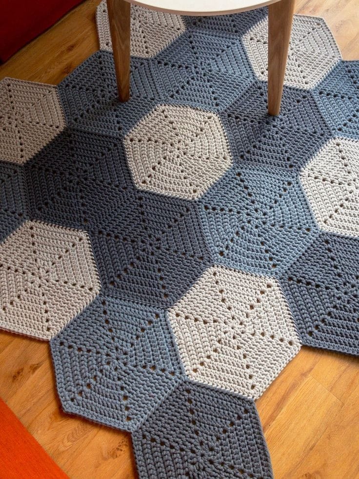 - Motivos geométricos: quadrados, triângulos e hexágonos com contraste de cores — ideais para tapetes e mantas.