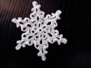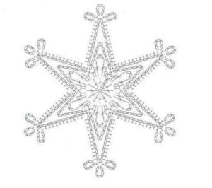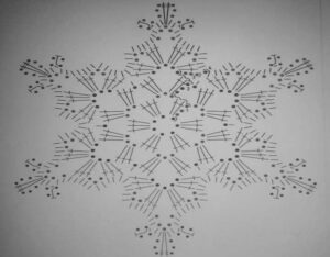 3ª carr.: Emende o fio Bandeira, inicie com 1 corr. 1 p.b. no mesmo p. de base, * suba 6 corr. volta a partir da 2ª corr. a contar da ag. com 1 p.b. 1 m.p.a., 1 p.a., 1 p.a.d., 1 p.a.t., pule 3 pts. da carr. de base, 2 p.b. no mesmo p. de base, * rep. de *a* mais (5x). Feche com p.b.x. Rem. o fio.