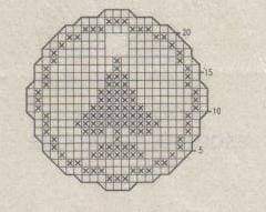 2ª carr.: emende o fio Paixão, inicie com 3 corr. 1 p.a. no mesmo p. de base, * 2 p.a. no mesmo p. de base, * rep. de *a* mais (10x). Feche com p.b.x. Rem. o fio.