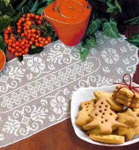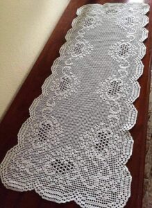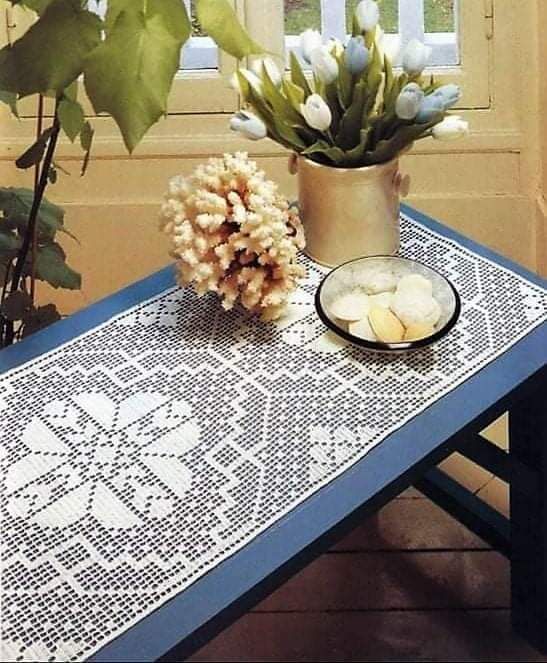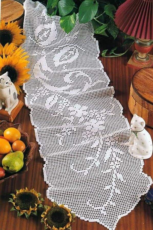 3. Tradição e Herança Cultural: Os caminhos de mesa em crochê filé muitas vezes carregam consigo uma rica herança cultural. Em algumas culturas, essas peças são passadas de geração em geração, tornando-se verdadeiros tesouros de família que contam histórias e tradições.