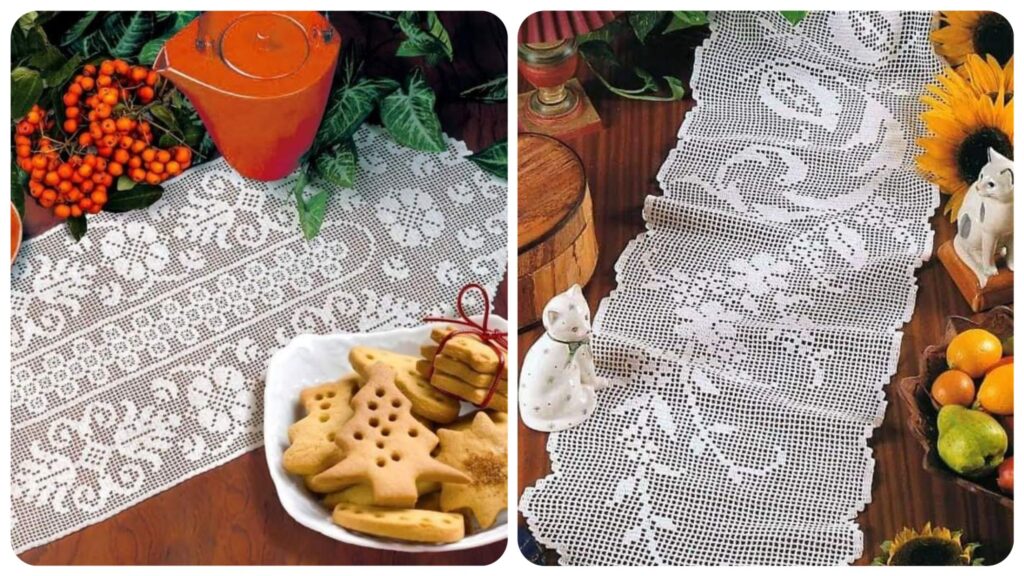 Incorporando Caminhos de Mesa em Crochê Filé à Decoração