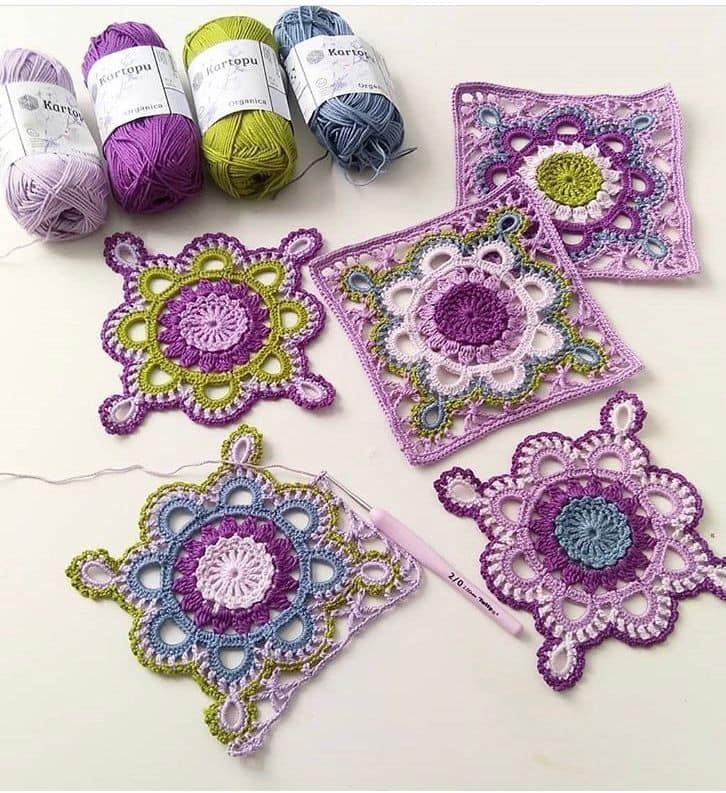 Outra vantagem é a possibilidade de utilizar sobras de fios de outras criações, o que não só reduz o desperdício quanto promove a sustentabilidade. A modularidade também é um ponto forte desses quadrados, permitindo criação e ajuste de projetos facilmente. Adicionar um novo square ou substituir um não satisfatório é simples, recurso particularmente útil em projetos grandes ou complexos.