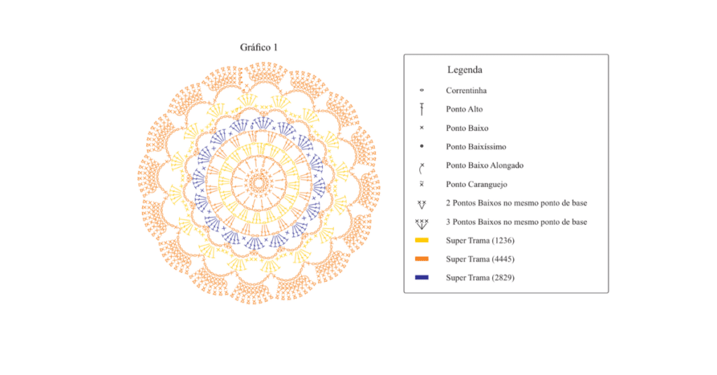 Dessa forma, basta que continue acomp. gráfico 1 do sousplat, trab. em carr. circulares e realizando as devidas trocas de cores. Rem. os fios. Ademais, faça 2 peças iguais.