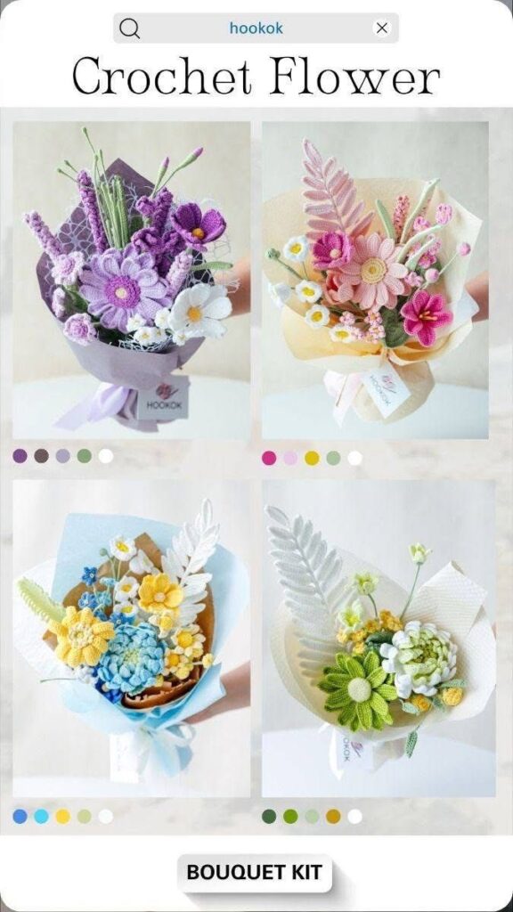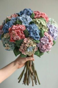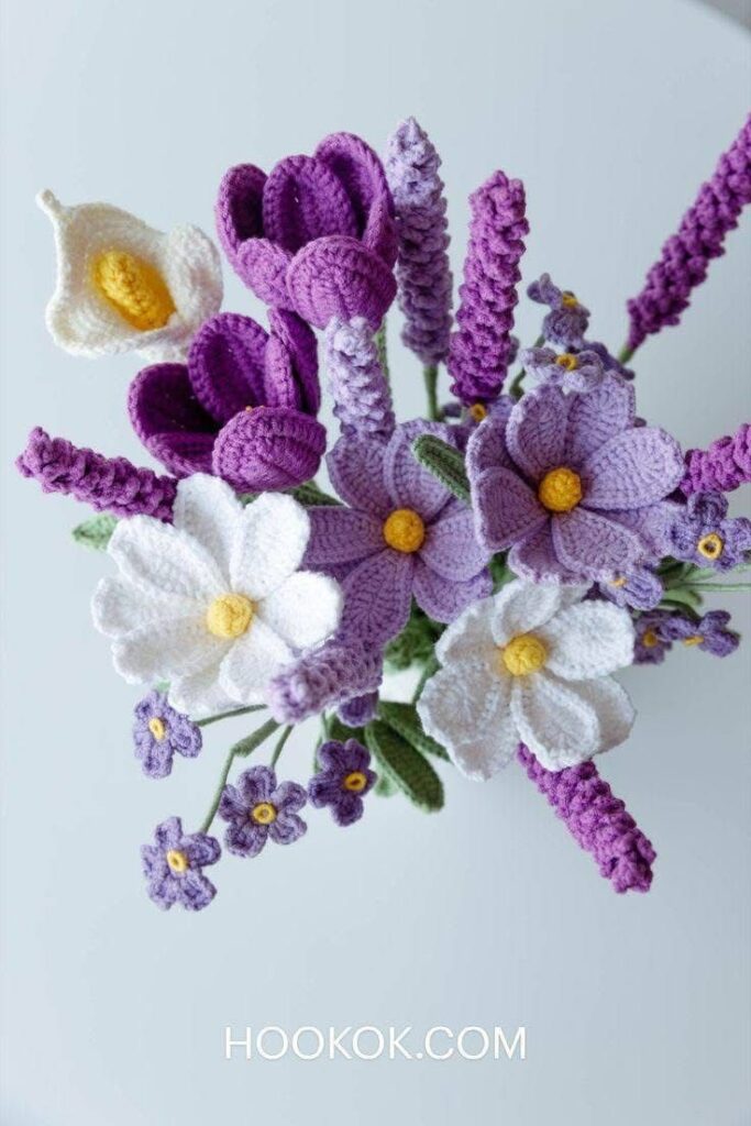 Uma das vantagens do crochê é a liberdade de criação. Você pode apostar em flores coloridas para transmitir alegria ou em tons neutros para uma proposta mais sofisticada. Misturar diferentes tipos de pontos e fios também deixa os buquês mais interessantes e exclusivos.